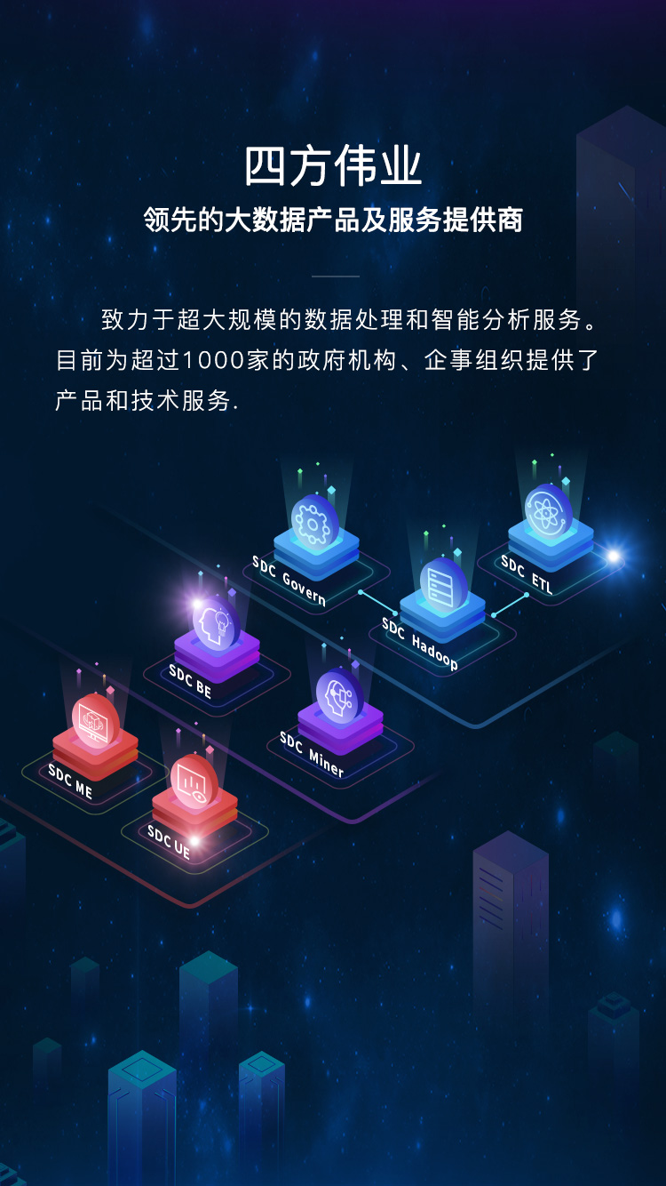 SDC ETL基于自主研發(fā)的大數(shù)據(jù)軟件產(chǎn)品,我們結(jié)合領(lǐng)先的創(chuàng)新能力并沉淀成功實(shí)踐的業(yè)務(wù)場(chǎng)景,全面提供覆蓋政府、軍工、能源、交通、金融、制造業(yè)等多個(gè)行業(yè)的典型應(yīng)用場(chǎng)景。